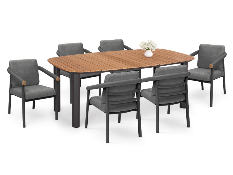 Σετ Τραπεζαρίας εξωτ.χώρου EUTOPIA με 6 πολυθρόνες (ΣΚΟΥΡΟ ΓΚΡΙ)
