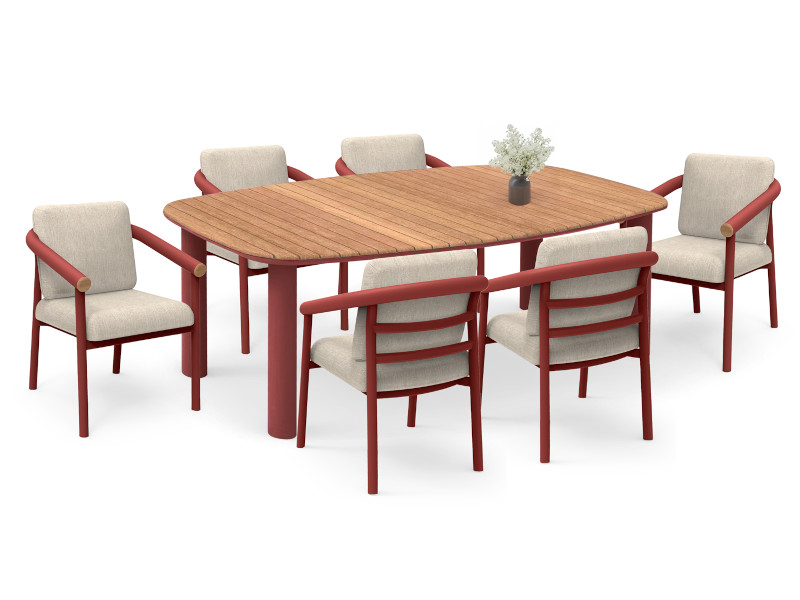 Σετ Τραπεζαρίας εξωτ.χώρου EUTOPIA με 6 πολυθρόνες (ΚΟΚΚΙΝΟ/ΜΠΕΖ)